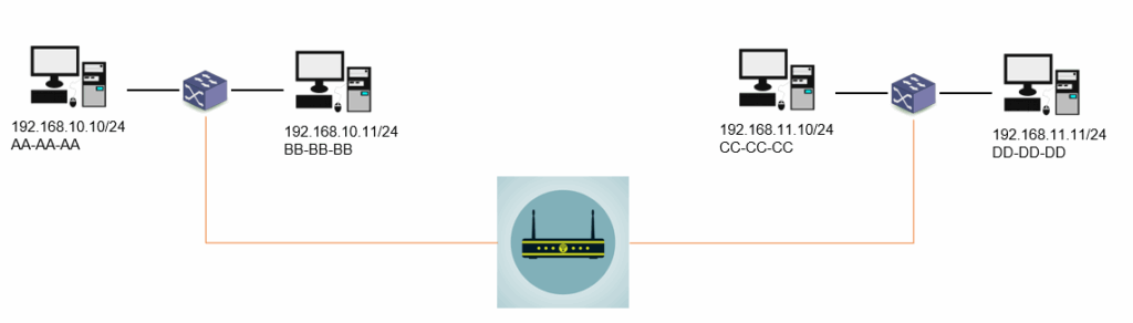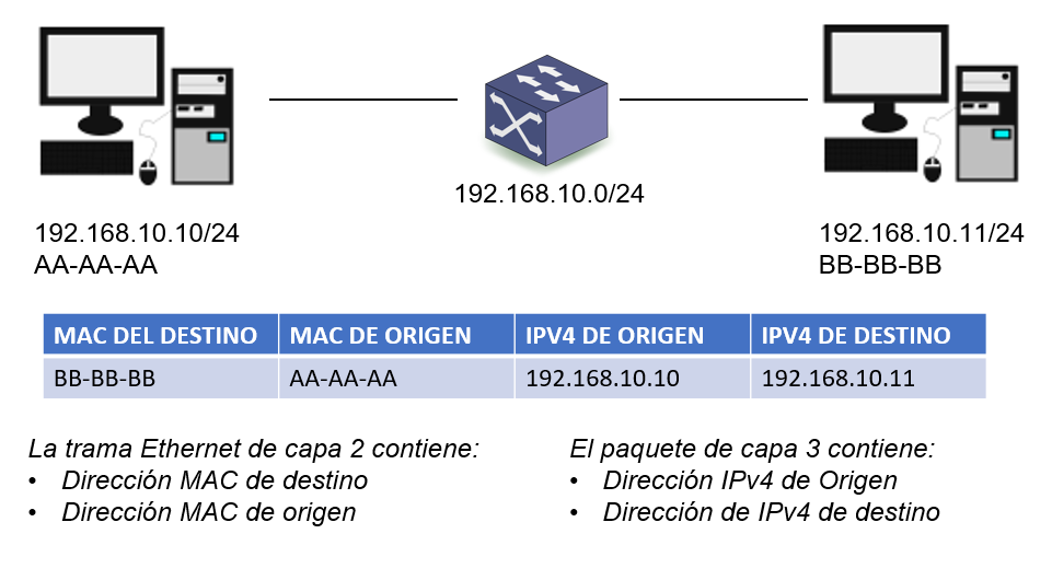 En la trama enviada entre dispositivos locales se coloca la dirección MAC del dispositivo de destino.